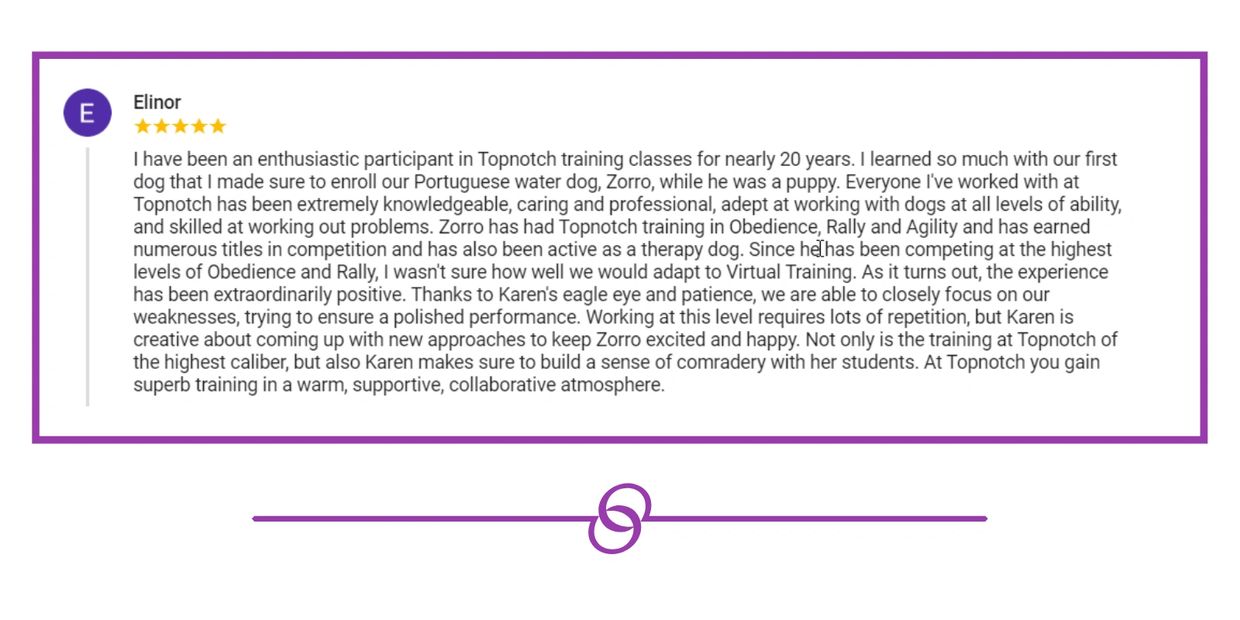 Topnotch Training values your canine's development and YOUR health equally. Thus we decided to offer a LIVE virtual training format via Zoom.